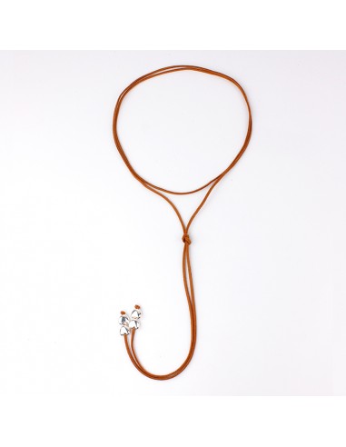 Collar de gamuza de múltiples vueltas con terminaciones en punteras de ccb níquel con forma de corazones.