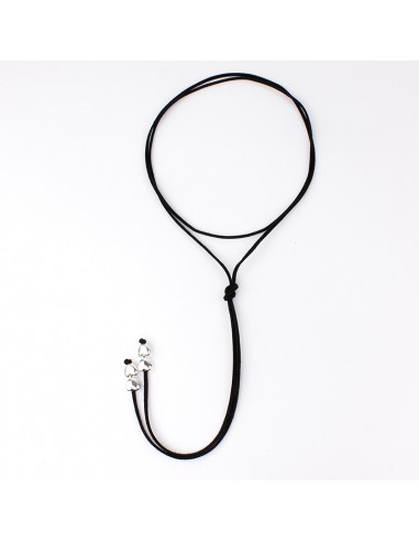 Collar de gamuza de múltiples vueltas con terminaciones en punteras de ccb níquel con forma de corazones.