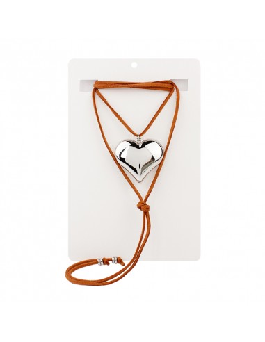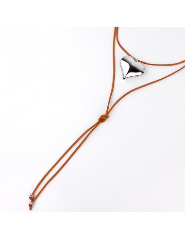 Collar de múltiples vueltas de gamuza con dije exclusivo de ccb con forma de corazón y terminaciones en punteras.