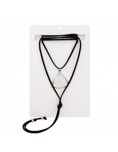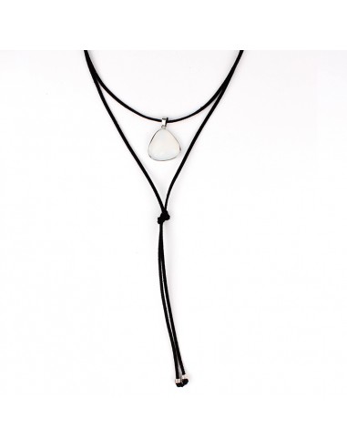 Collar de múltiples vueltas de gamuza con dije exclusivo de vidrio tornasol y terminales en punteras. Medidas 140cm