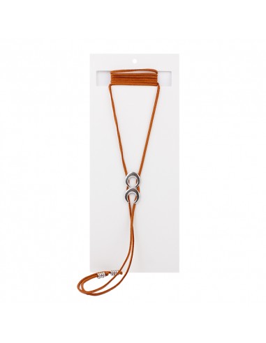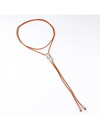 Collar corbatero de múltiples vueltas de gamuza con dijes exclusivos de fundicion con forma de luna y terminaciones en punteras.