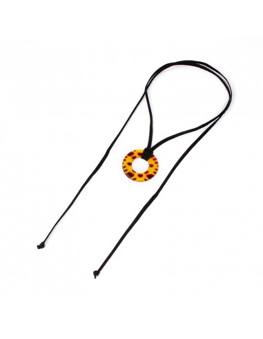 Collar de múltiples vueltas de gamuza con dije exclusivo de acrílico y terminaciones en punteras. Medidas 140cm