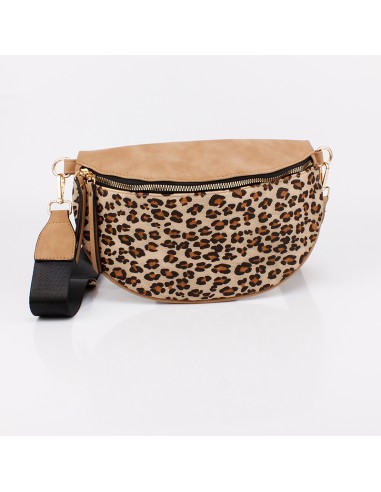 Riñonera de pu animal print y gamuza con bolsillo trasero e interno. Correa regulable y desmontable.