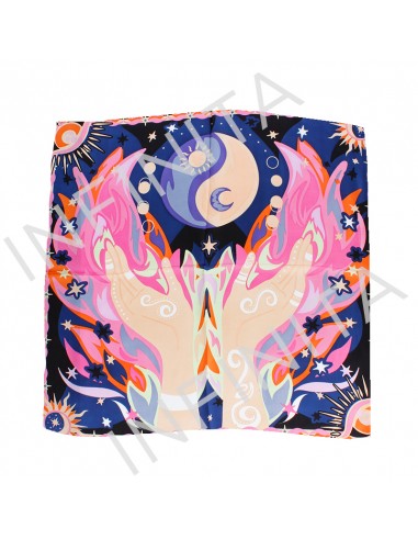 Pañuelo tela tipo seda con diseño de estampa exclusiva Infinita. (Estampado por impresión, ambos lados con dibujo)