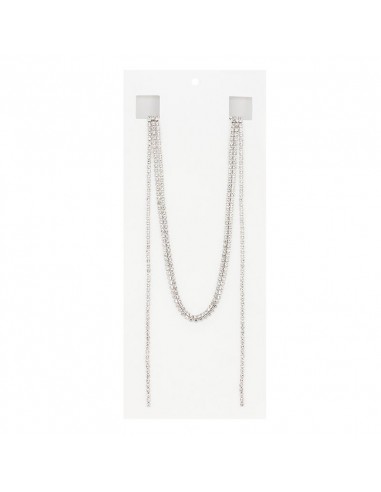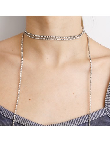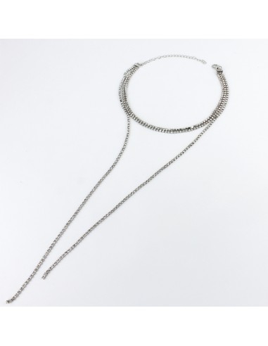 Collar largo de caída de cadena diferenciada de strass níquel.