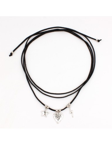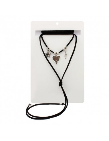 Collar corbatero de gamuza con dijes exclusivos níquel.