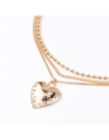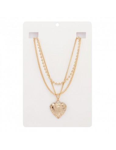 Collar de triple caída de cadenas diferenciadas con dije exclusivo en forma de corazón dorado. Medidas: 35, 37 y 38 cm. Y largo ajustable con cadena de enganche de 10 cm.