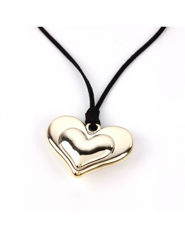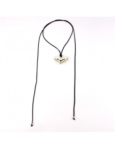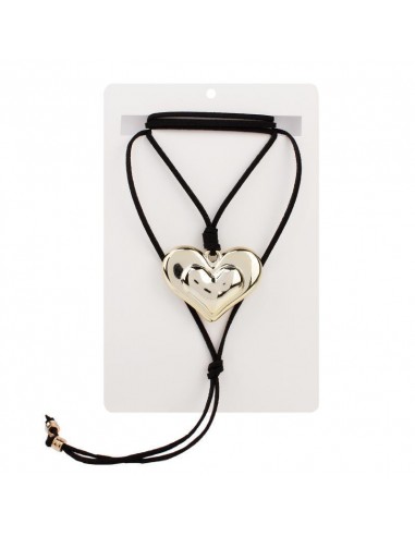 Collar corbatero de gamuza múltiples vueltas con dije exclusivo con forma de corazón de ccb dorado y terminaciones en punteras.