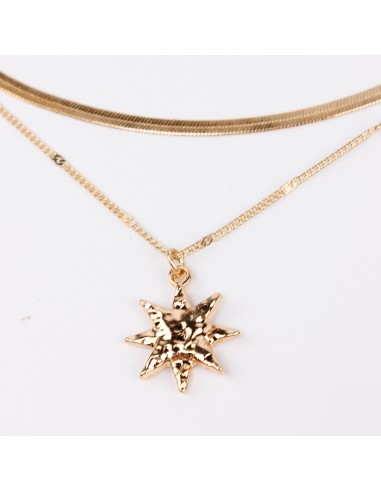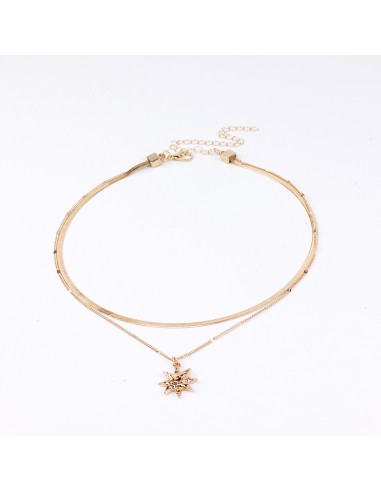 Collar de doble caída de cadena diferenciada con dije exclusivo en forma de sol dorado.