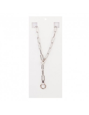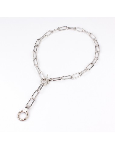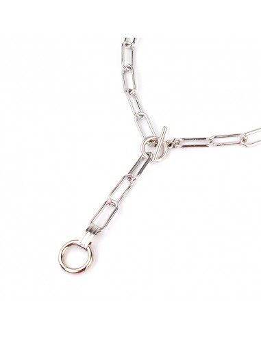 Collar largo de cadena diferenciada con caída adicional de cadena, dije exclusivo de ccb circular y cierre marinero.