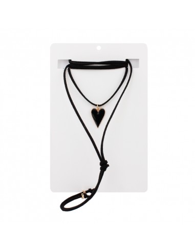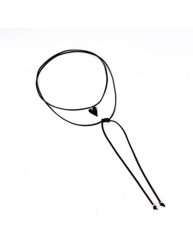 Collar de múltiples vueltas de gamuza con dije exclusivo con forma de corazón pintado a mano y terminaciones en punteras.