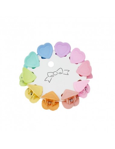 Set de 10 broches para pelo de múltiples colores con forma de corazón.