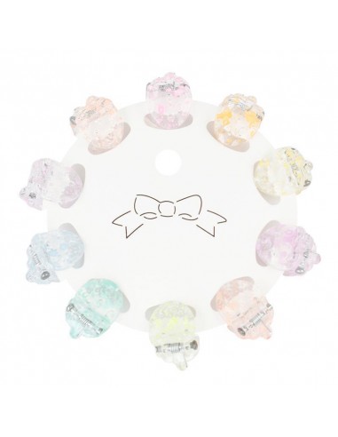 Set de 10 broches para pelo de múltiples colores con forma de frutilla. Cantidad: 10 unidades.Medida: 1cm.