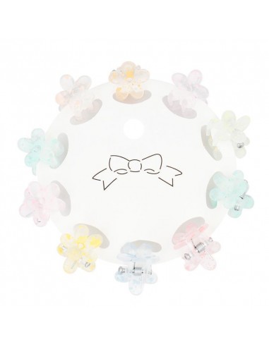 Set de 10 broches para pelo de múltiples colores con forma de flor.