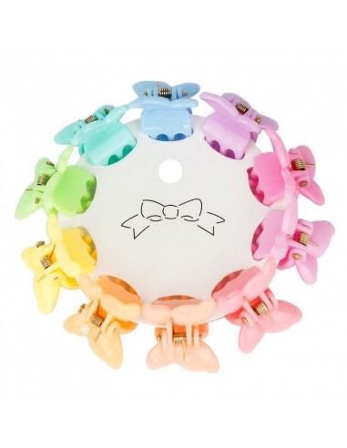Set de 10 broches para pelo de múltiples colores con forma de mariposa.