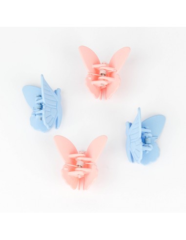 Set de cuatro broches de acrílico para pelo con forma de mariposa.