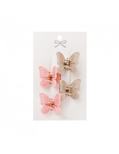 Set de cuatro broches de acrílico para pelo con forma de mariposa.