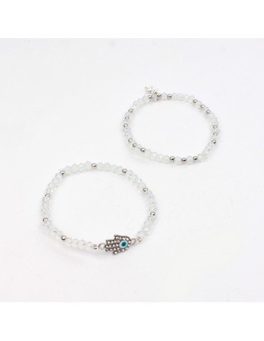 Set de dos pulseras de rocas de cristal con dijes exclusivos y de strass níquel.