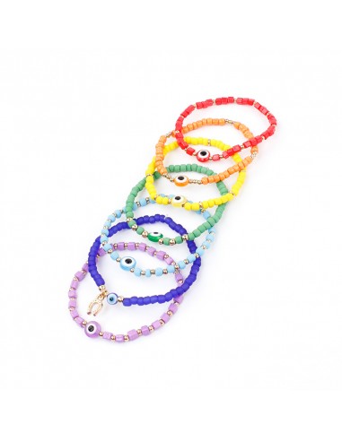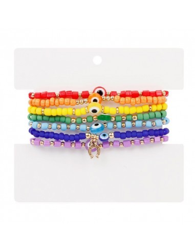Set de pulseras elásticas de mostacillas con los colores de los chakras.