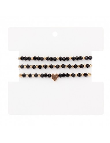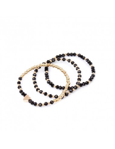 Set de tres pulseras elásticas de rocas de cristal y dijes exclusivos dorados.