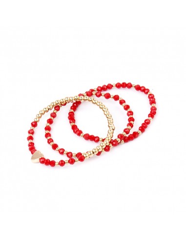 Set de tres pulseras elásticas de rocas de cristal y dijes exclusivos dorados.