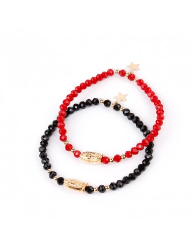 Set de pulseras elásticas de roca de cristal con dijes exclusivos dorados.