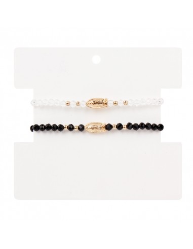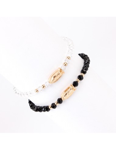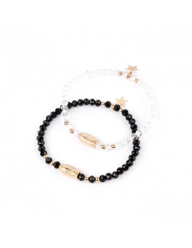 Set de pulseras elásticas de roca de cristal con dijes exclusivos dorados.