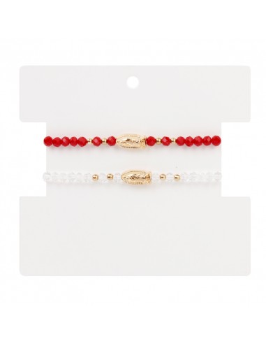 Set de pulseras elásticas de roca de cristal con dijes exclusivos dorados.