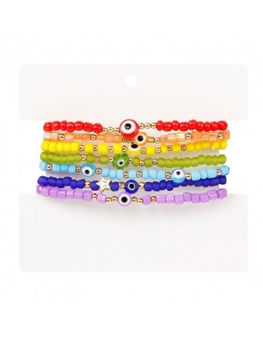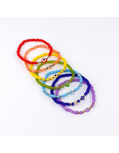 Set de pulseras elásticas de mostacillas con ojos exclusivos de ccb formando los colores del chakra.