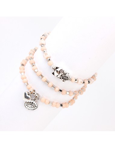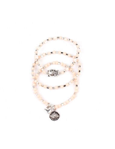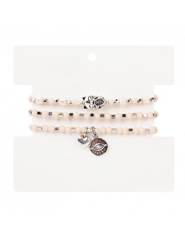 Set de tres pulseras elásticas de rocas de cristal y dijes exclusivos níquel.