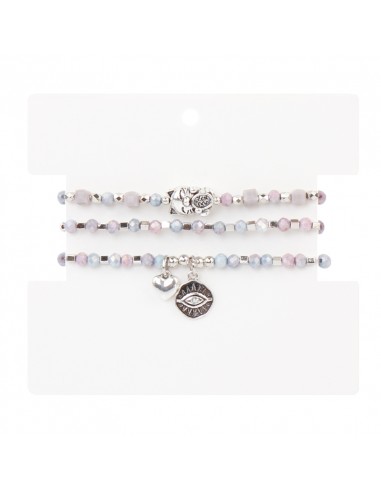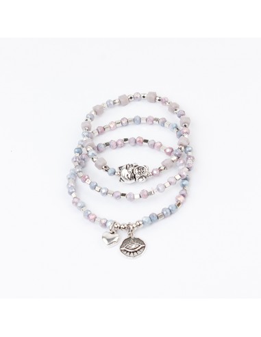 Set de tres pulseras elásticas de rocas de cristal y dijes exclusivos níquel.