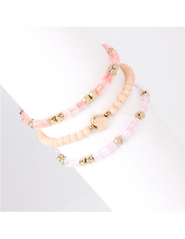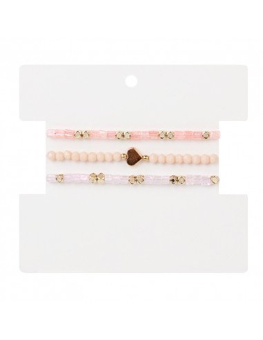 Set de tres pulseras elásticas de rocas de cristal y mostacillas con piezas de exclusivas de distintas formas y tamaños doradas.