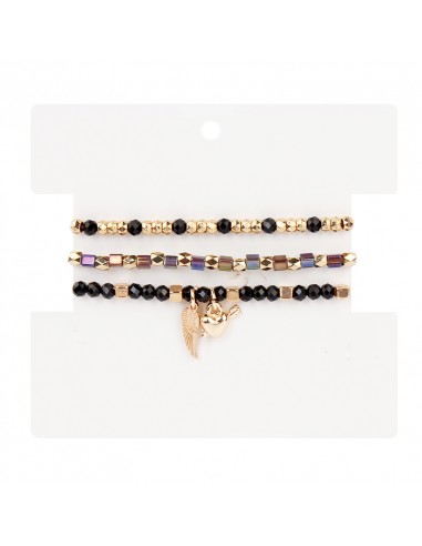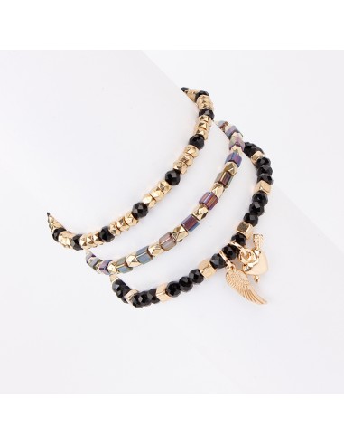 Set de pulseras elásticas de roca de cristal con mostacillas y dijes exclusivos dorados.