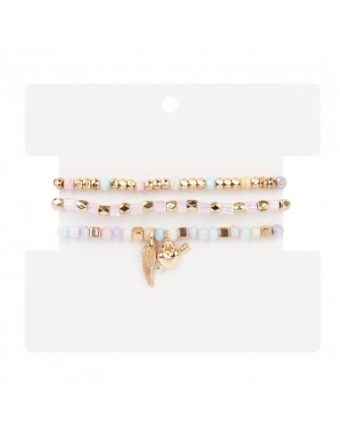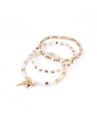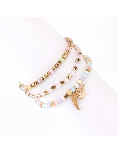 Set de pulseras elásticas de roca de cristal con mostacillas y dijes exclusivos dorados.