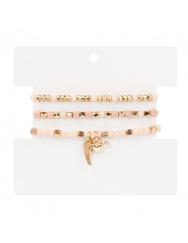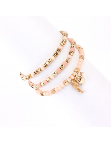 Set de pulseras elásticas de roca de cristal con mostacillas y dijes exclusivos dorados.