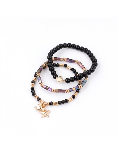 Set de tres pulsera elásticas de piezas de vidrio roca de cristal y mostacillas con dijes exclusivos dorados.