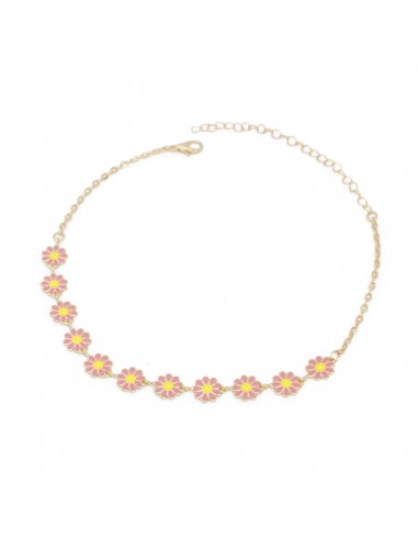 Choker de cadena diferenciada con múltiples flores pintadas a mano doradas.