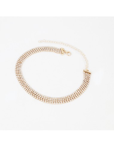 Choker de múltiple caída de cadena diferenciada de strass dorado.