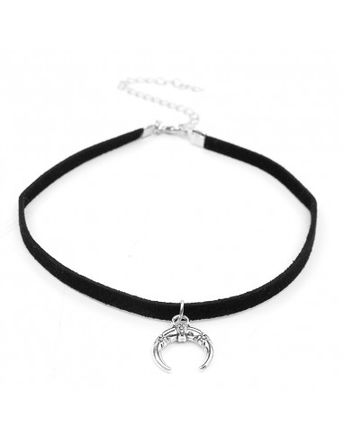 Choker de gamuza con dije exclusivo níquel en forma de luna.