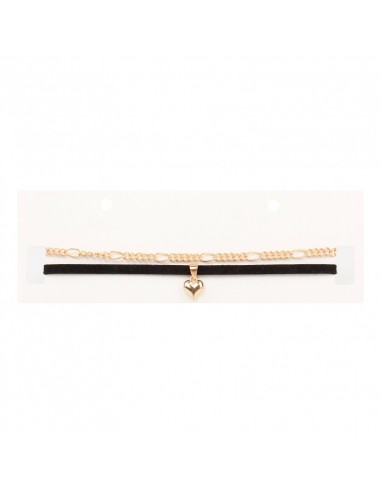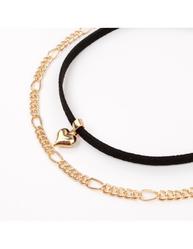 Set de dos choker de cadena diferenciada dorada combinado con gamuza y dije exclusivo en forma de corazón.