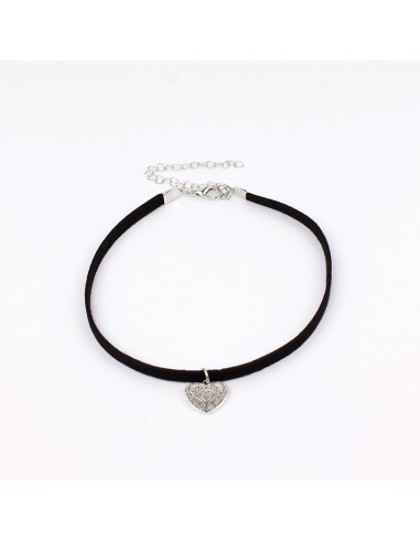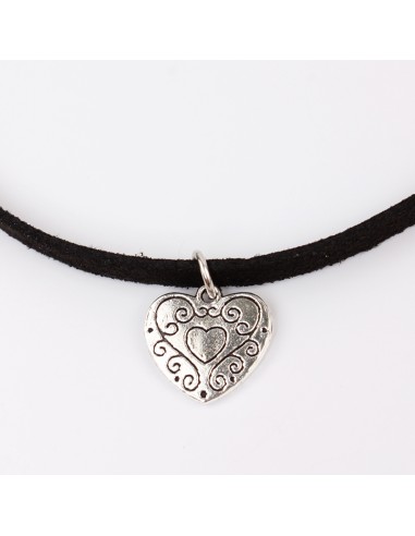 Choker de gamuza con dije exclusivo con forma de corazón níquel.