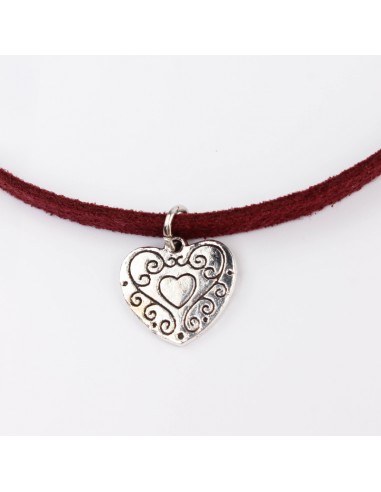 Choker de gamuza con dije exclusivo con forma de corazón níquel.