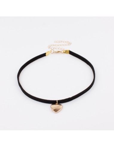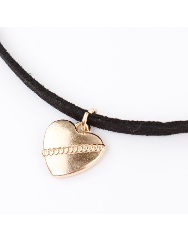Choker de gamuza con dije exclusivo con forma de corazón dorado.