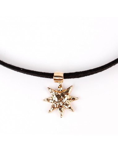 Choker de doble gamuza con dije exclusivo con forma de sol dorado.