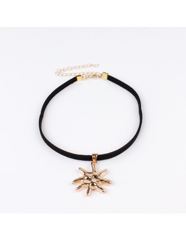 Choker de gamuza con dije exclusivo con forma de sol dorado.