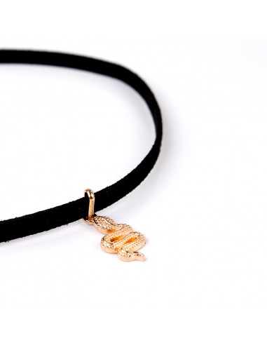 Choker de gamuza con dije exclusivo con forma de serpiente dorada.