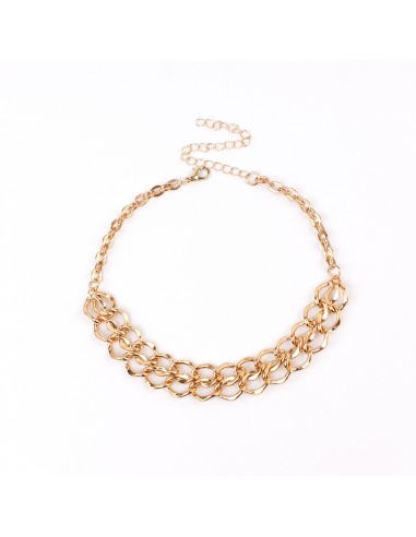 Choker de cadena diferenciada de eslabones entrelazados dorada. Cierre con mosquetón y cadena de enganche.