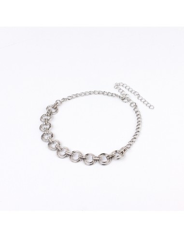 Choker de cadena diferenciada de doble eslabón níquel. Cierre con mosquetón y cadena de enganche.