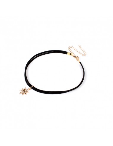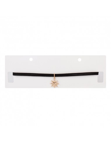 Choker de gamuza con dije exclusivo con forma de sol dorado.