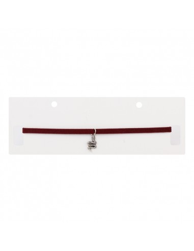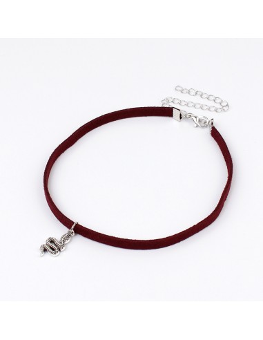 Choker de gamuza con dije exclusivo con forma de serpiente níquel. Cierre con mosquetón y largo ajustable con cadena de enganche.